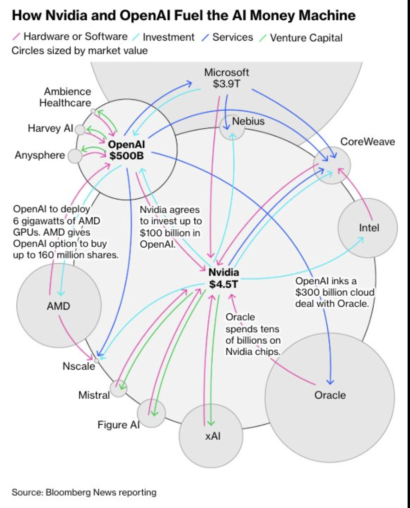 Meanwhile AI companies are using a circular financing scheme promising each other $300 billion contracts to gin up the value of their stocks and the Federal Reserve rushes billions in overnight repro (repurchase agreement) to save banks from defaulting on their obligations. One giant economic crashing Enron style Ponzi Scheme ready to crash. Get ready.