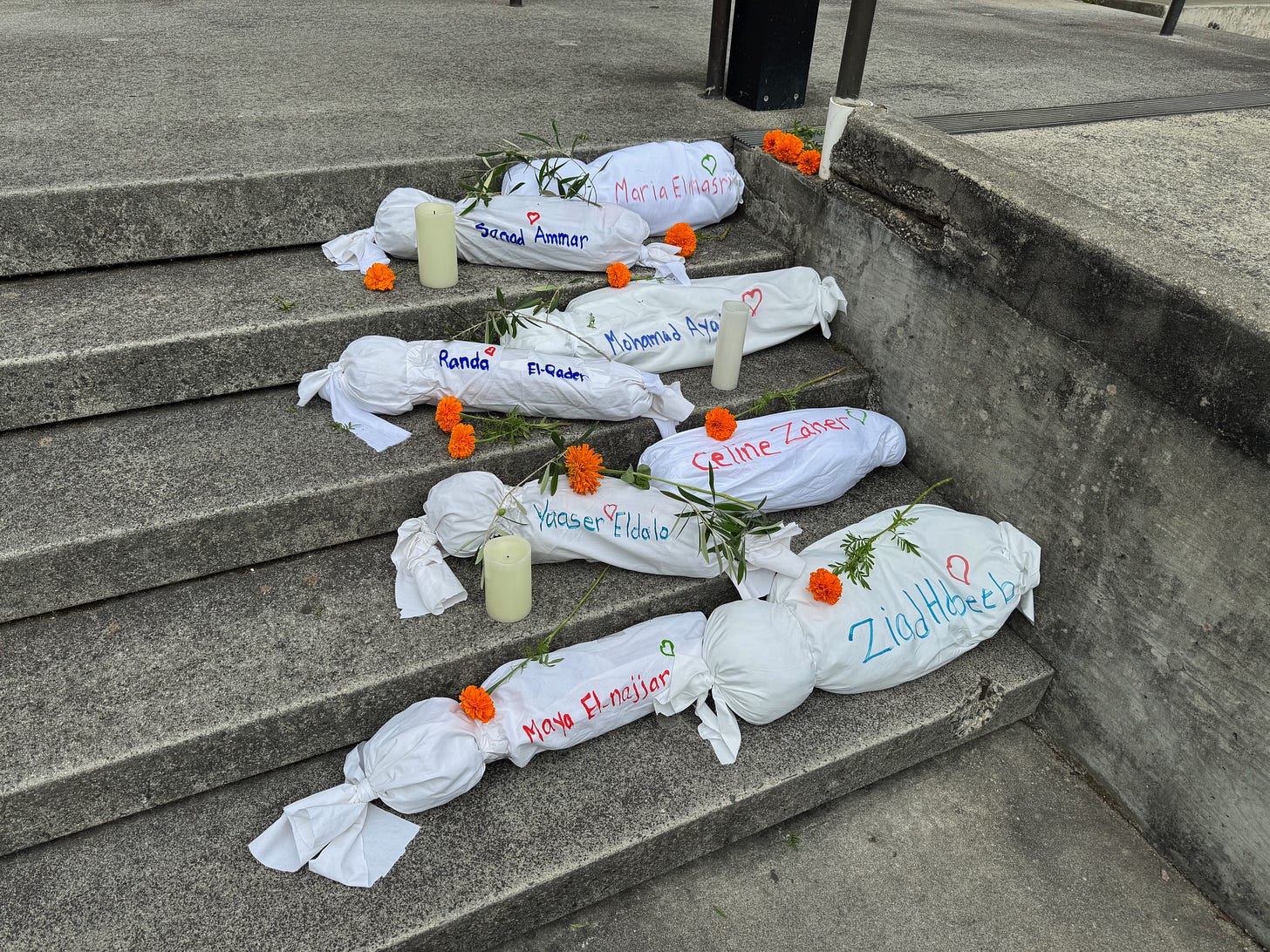 Our homeless friends are not the only people being erased. While the county may have been able to erase our unhoused neighbors they couldn’t stop us from reading the full names of those killed with US weapons in Gaza. The names of Palestinian babies under age one murdered by Israel took nearly two hours to read during our September 5, 2025,“Know their names” memorial on the steps of the county building. The names of the one year olds took another two hours to read. Over 2,700 entire Palestinian bloodlines erased.